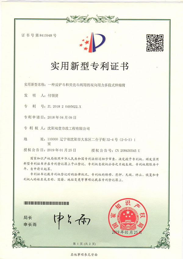 沈陽雙壹機(jī)械主要從事挖掘機(jī)伸縮臂、加長(zhǎng)臂、氣彈簧生產(chǎn)業(yè)務(wù)、挖掘機(jī)租賃業(yè)務(wù),生產(chǎn)研發(fā)18-55米伸縮臂,200米卷揚(yáng)挖掘器;公司生產(chǎn)的三節(jié)伸縮臂為雙向用力,可配帶挖掘斗與貝殼斗,超大斗容2.6立方;研發(fā)的氣彈簧可節(jié)油50%,加大斗容80%,提高大臂舉升力!挖掘機(jī)伸縮臂適用于地鐵、地下人防、沉井、河道清淤、高層樓基礎(chǔ)、管廊工程等深遠(yuǎn)坑作業(yè),產(chǎn)品選材優(yōu)良,設(shè)備工藝先進(jìn),質(zhì)量穩(wěn)定可靠,雙壹機(jī)械以質(zhì)量求生存、以信譽(yù)占市場(chǎng)的經(jīng)營原則為全國用戶提供優(yōu)質(zhì)產(chǎn)品。